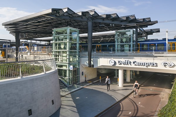 Dankzij een innovatieve overkapping is station Delft Campus het eerste volledig energieneutrale treinstation van Nederland. Benthem Crouwel Architecten ontwierp het station, mede mogelijk gemaakt door de hoge ambities van ProRail en de gemeente Delft. De vleermuisachtige structuur is geïnspireerd op de hightech wereld van stealth-technologie en op bio mimicry, waar door de mens gemaakte constructies de natuur imiteren.