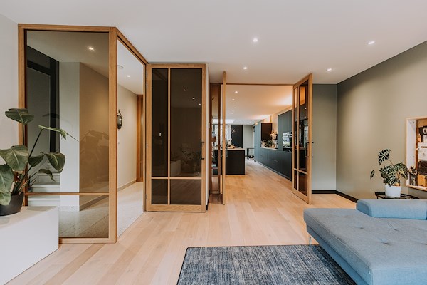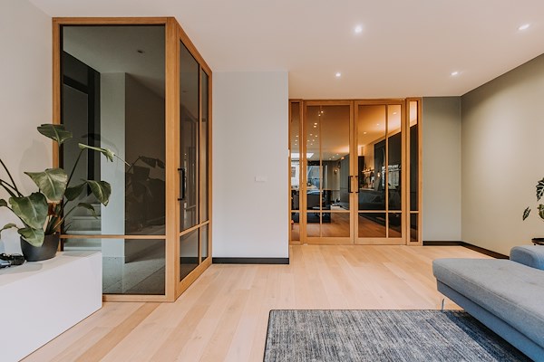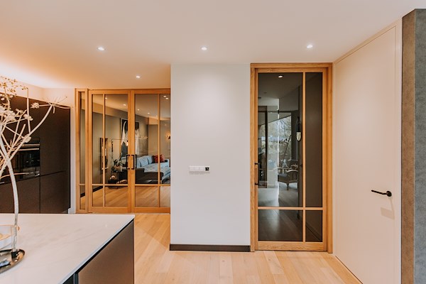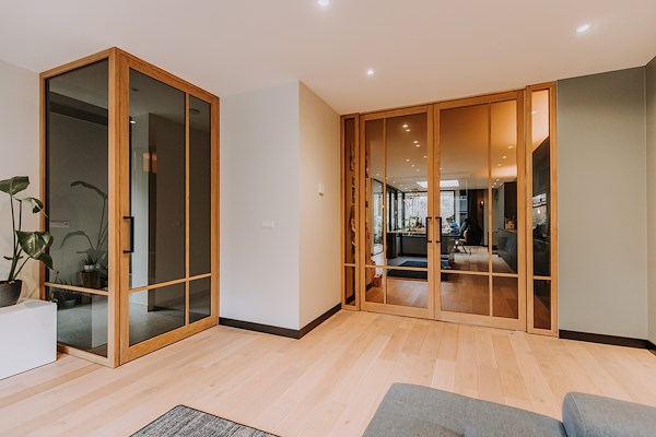 In deze woning hebben wij een hoekopstelling gerealiseerd en een tussenwand tussen kamer en keuken. Het bronze glas waar hier voor gekozen is, geeft direct sfeer aan het interieur. De wanden zijn gemaakt van massief eikenhout, hierdoor is het een duurzame keuze. Bij ons is alles maatwerk en daardoor kunnen wij aan ontzettend veel wensen voldoen! Wij kijken uit naar nog meer prachtige uitdagingen!