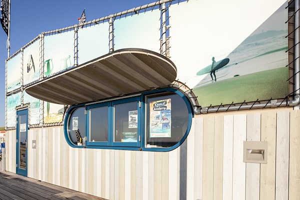 Wij hebben als bureau de subsidie aanvraag begeleid en het speciale clubgebouw ontworpen. Het was uitdagend om een multifunctioneel gebouw te ontwerpen dat toch simpel en open van karakter is, ook was dit project bijzonder omdat het gebouw verplaatsbaar moet zijn als het strandseizoen eindigt. Door het gebruik van natuurlijke kleuren en duurzame materialen moet zowel het interieur als het exterieur passen bij de ecologische doelstellingen van de club. Het gaat om een energiezuinig gebouw met gebruik van milieuvriendelijke installaties. Er is gekozen voor modulaire units omdat de functie van het gebouw een seizoensgebonden karkater heeft. Hierdoor kan het gebouw eenvoudig gedemonteerd en in de winter elders gestald worden.