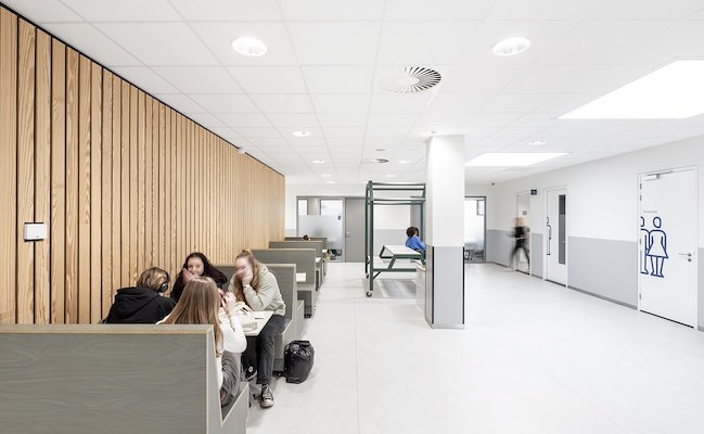 BDG Architecten koos voor de toepassing van Rockfon Krios-panelen voor de plafonds. Volgens De Jong een logische keuze. “Rockfon Krios is voor ons een bekende en goede plafondplaat. Deze heeft zich in de onderwijssector bewezen”, geeft hij als verklaring.