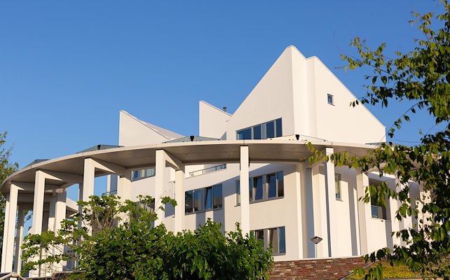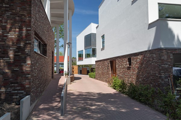 Vanuit deze realiteit heeft de architect een speciaal plan ontworpenwaarin de ronde kerk constructie een tweede leven heeft gekregen. De koepel en de muren zijn weggehaald waardoor er een autonome cirkelvormige betonnen colonnade overblijft. Binnen deze ruimtelijke constructie zijn 10 woningen gebouwd. Op de plaats van de oude pastorie zijn 5 woningen gekomen. En achter in de diepe tuin is een vrijstaande villa gerealiseerd. Het open groene karakter van de locatie is door de betonnen coulisse constructie van de colonnade en de losse plaatsing van de bouwvolume tussen de bomen, gearticuleerd. De bebouwing heeft een aardse plint van metselwerk en witte puntige daken die de circelconstructie doorbreken en in de zon schitteren.