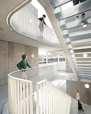 De woningen zijn gegroepeerd rondom een collectieve binnentuin. Deze binnentuin is de centrale ontmoetingsplek voor de jonge bewoners met veel groen en plekken voor verschillend gebruik. Er zijn sportattributen geplaatst en er zijn allerlei zitplekken waar bewoners kunnen samenkomen.