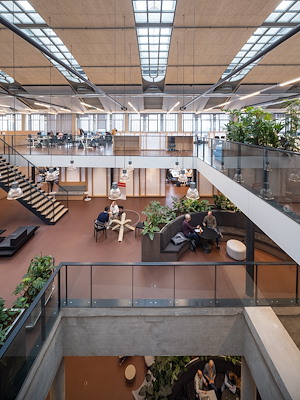 Het interieurontwerp van Kraaijvanger Architects beantwoordt de behoefte van PostNL aan deze nieuwe manier van werken, waarin samenwerking, flexibel gebruik en het welzijn van de medewerkers centraal staan. “Het monumentale gebouw kent een bijzondere ruimtelijke opzet en sfeer: de gevel van glazen bouwstenen, de diepe vloervelden en de krachtige constructie-elementen. Die zijn, samen met de gedurfde ingreep van KCAP om de betonnen vloeren in het midden open te snijden, leidend geweest bij het ‘mappen’ van de verschillende gebieden in het interieur”, zegt Chantal Vos, associate partner bij Kraaijvanger Architects.