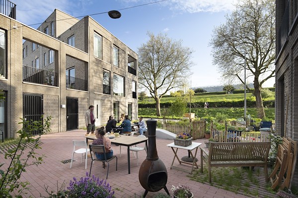 Op verschillende schaalniveaus zit sociale duurzaamheid verankerd in The Hudsons. Op blokniveau zijn alle woningen georganiseerd rondom 5 binnengebieden, met private en gemeenschappelijke tuinen. Deze daktuinen vormen een vertrouwde omgeving voor bewoners, waar kleine kinderen veilig kunnen spelen en buren elkaar beter leren kennen. De autovrije doorsteken en Delftse stoepen zijn ontworpen als ontmoetingsplekken voor bewoners van overliggende bouwblokken en als speelruimte voor kinderen uit de buurt.