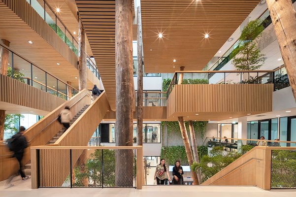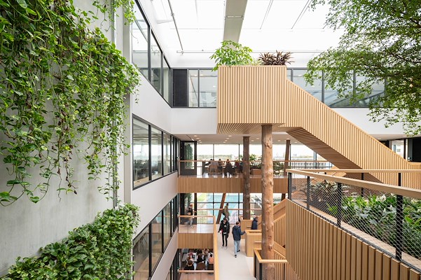 In het gebouw zijn op verschillende niveaus studieplekken gelegen. Deze verdiepingen zijn verbonden met een centraal gelegen trap. Door de groene en centrale wandelroute worden gebruikers gestimuleerd om de trap te nemen, waar ze onderweg naar de bestemming elkaar tegen kunnen komen.