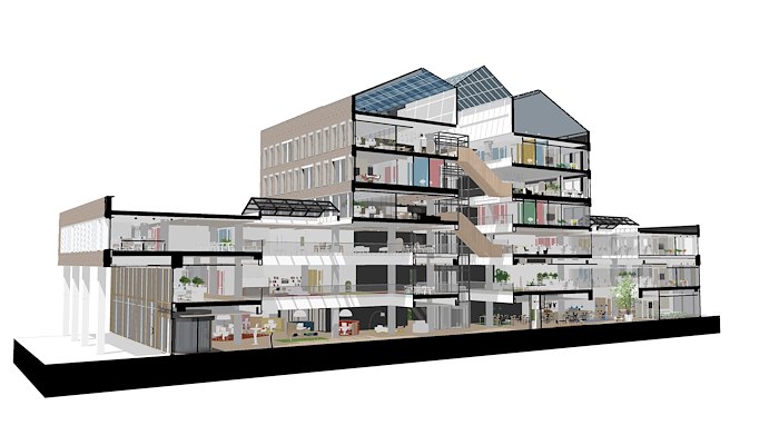 Het gebouw biedt onderdak aan een deel van de gemeentelijke organisatie en de stadswinkel. De hele begane grond met de stadswinkel, het werkrestaurant en het vergadercentrum is vrij toegankelijk voor publiek. De toevoeging van extra vides, nieuwe liften en trappen maken het gebouw licht en uitnodigend en zorgen ervoor dat de kantoorverdiepingen in open verbinding staan met de publiekshal.