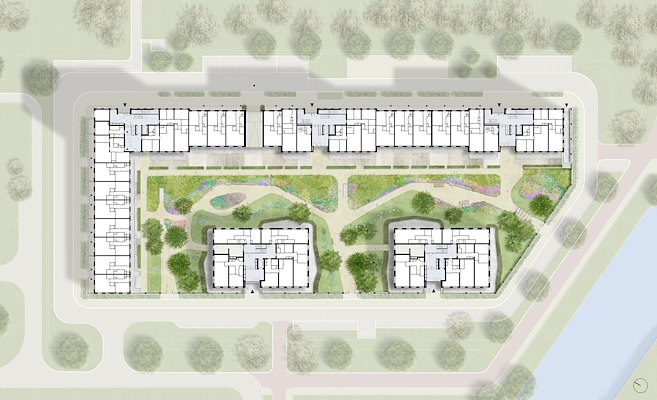 Binnen de grenzen van een opgave zoeken we ook altijd naar kansen daarbuiten. In dit ontwerp is de rijke aansluiting bij de omgeving, de open benadering van het semiopenbare binnenhof de kracht van het ontwerp. Het wonen en ontmoeten staat centraal. De grote dubbelhoge entreehallen van de hoogbouw langs de te handhaven dreef staan direct in verbinding met het hof. De vrijstaande appartementengebouwen tonen aan dat rondom wonen vele kwaliteiten heeft mits goed gepositioneerd.