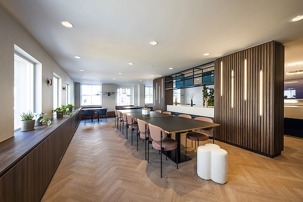 Het jaren 70 pand kenmerkt zich door ruime verdiepingen; 4 vloeren van circa 1200 m². Een ideale lay-out voor een dynamisch grootschalig multi-tenant kantoor. De centrale entree wordt geplaatst aan de Zeestraat met een gastvrij hospitality concept, vergaderruimtes en een koffiebar midden in een bruisend werkcafé welke toegankelijk is voor alle huurders, inclusief de huurders van de (individuele) monumentale panden. In het ontwerp heeft de tuin een belangrijke rol zodat deze ook vanuit de kantoren wordt beleefd. Het pand wordt zo duurzaam mogelijk herontwikkeld met een hoog afwerkingsniveau en een interieur die door de huurder naar wens kan worden ingevuld.