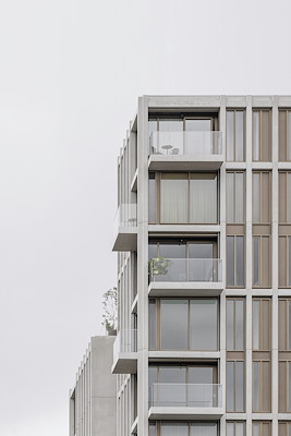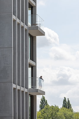 One of the main challenges was to create an energy-efficient, load-bearing facade with maximum transparency and a view of the Leiden skyline. Another challenge for the design was to maintain an economically viable housing density, while giving each apartment a living space on the corner. The use of staggered balconies helped achieve this objective and ensured well-lit spaces for all apartments.