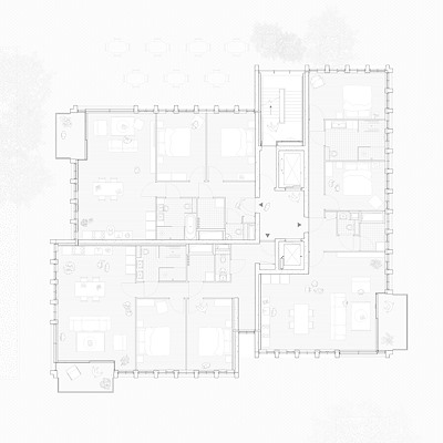 The load-bearing construction is formed solely by the facade columns and the lift core, which means that the divisibility of the interior remains very flexible. This provides programmatic scalability and adaptability, allowing for versatile use of the building over time.