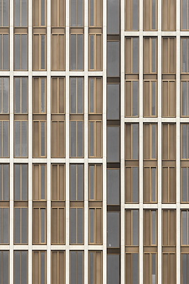 The building uses a limited combination of materials: the skeleton was constructed from prefab parts of concrete. By adding titanium dioxide, all parts are of the same color, this homogeneity enhances the interplay of lines. The concrete structure contributes to the desired raw and industrial aesthetic. The windows and curtain walls have powder-coated bronze frames that complement the color palette of the Meelfabriek.