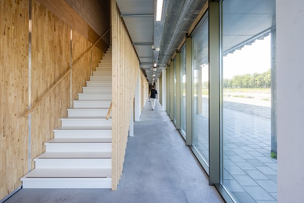 is de kunst van het weglaten een belangrijk speerpunt in het circulaire ontwerp van Sporthal Bredius. Het weglaten van afwerkingen die geen functioneel doel dienen verlaagt de kans dat deze producten in de toekomst toch onverhoopt tot afval leiden. Het resultaat is een beeld dat uitdrukking en een identiteit geeft aan circulariteit.