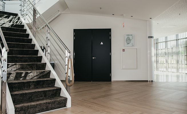 Gezien het multifunctionele karakter worden er hoge eisen gesteld aan veiligheid, met name brandveiligheid. Binnen ons leveringsprogramma is een keuze gemaakt uit geclassificeerde oplossingen voor aanslagdeuren die voldoen aan 30 en 60 minuten WBDBO. Voor een aantal representatieve ruimtes is gekozen om de deurnaalden in de kleur te moffelen gelijk aan de HPL kleur van de deur. Hierdoor gaat de deurnaald esthetisch gezien geheel op in het deurblad, een unieke combinatie!