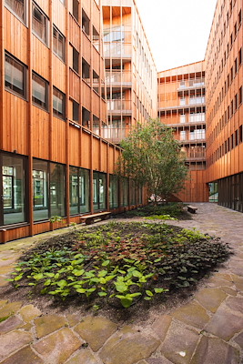 , die zichzelf ten doel heeft gesteld de stad duurzaam te vergroenen, heeft zich mogen ontfermen over de realisatie van de daktuin, het hijsen van bomen en de aanleg van de binnenpatio.