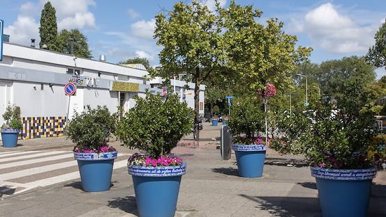 Plaatsing 120 reuzenbloempotten winkelgebied Delft