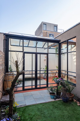 In hartje Amsterdam bevindt zich deze kleine woninguitbreiding. De toenemende druk op de woningmarkt en de behoefte van gezinnen om in de stad te blijven wonen is afgewogen tegen de opkomende waardering voor bestaande buitenruimtes en het belang van het behoud van groen in de wijk. Het ontwerp voor de tuinkamer is daarom geïnspireerd op de kas.