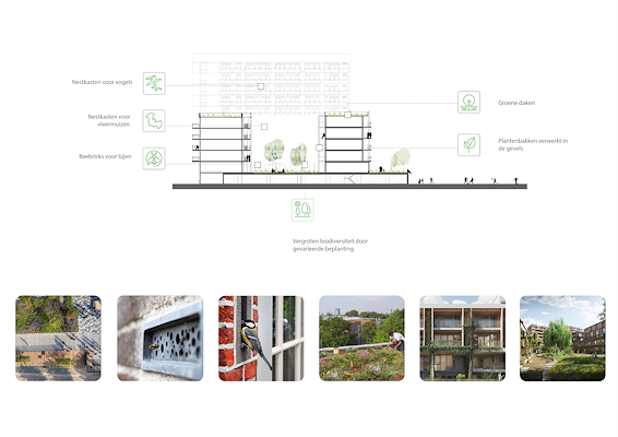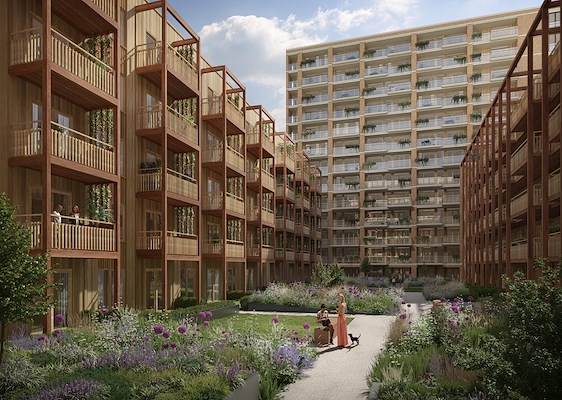 In de binnentuin ontstaat een nieuwe wereld. Een oase van groen en rust biedt de bewoners ruimte om op een veilige manier te ontsnappen aan de drukte van de stad. Omsloten door de gevels van hout die een zachte, duurzame uitstraling bieden, is de aantrekkelijk ingerichte, collectieve binnentuin bij uitstek de plek om samen van de zon en het groen te genieten. Dat zorgt voor een prettige woonbeleving én is goed voor het milieu.