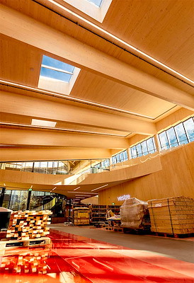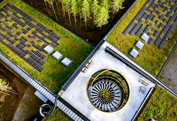 "The Plus" is echt een integraal onderdeel van de natuur. De bomen die gekapt zijn om plaats te maken voor het gebouw zijn verwerkt in de constructie van het gebouw. Wat de biodiversiteit betreft, heeft Vestre, met de hulp van een ingehuurde ecoloog, de bosbodem gewoon op het dak van "The Plus" getild. Daar, tussen de eigen flora en fauna van het bos, liggen ongeveer 900 zonnepanelen in perfecte harmonie met de lichtstraatmodules van VELUX Commercial.