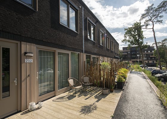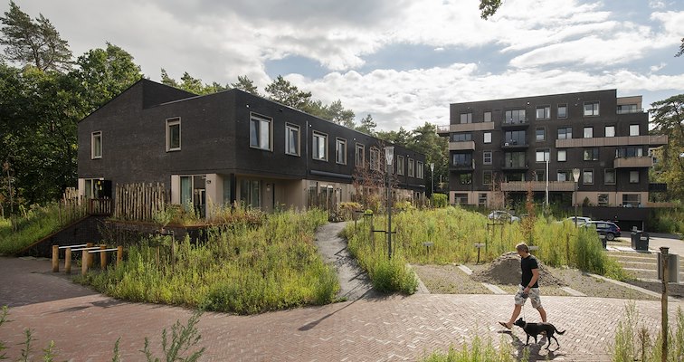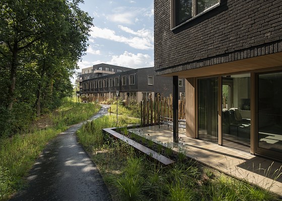 De grondgebonden woningen gaan niet alleen op in de natuur, maar zijn ook ontzettend groen in gebruik. De energieneutrale en gasloze woningen hebben een goede thermische schil en kierdichting en een warmtepomp zorgt voor verwarming en koeling.