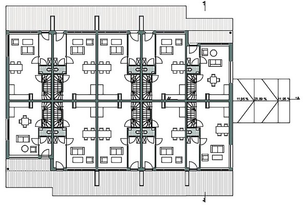 Het is absoluut een compliment voor de gemeente Zeist dat de kwaliteitseisen voor sociale woningbouw in Kerckebosch even hoog zijn als voor de overige middeldure en dure woningen. We hebben het appartementengebouw in lijn ontworpen met de starterswoningen. Ook dit gebouw heeft een alzijdige uitstraling en is opgenomen in het glooiende landschap waardoor het parkeren onder het gebouw opgelost kon worden.