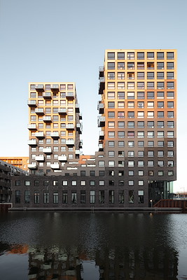 Door de torens diagonaal tegenover elkaar te plaatsen krijgt het gebouw het veranderlijke silhouet en ontstaan onbelemmerde uitzichten vanuit elk appartement. Alle woningen op het podium hebben ruime buitenruimtes die grenzen aan daktuinen en hebben een zonnige oriëntatie of een oriëntatie op het Tolhuiskanaal.