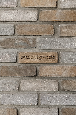 In samenwerking met StoneCycling ontwikkelden we een nieuwe serie zogeheten WasteBasedBricks®, waarin geselecteerd sloopafval wordt geüpcycled naar hoogwaardige bouwstenen. Met deze stenen konden we in het ontwerp voor 360 Degrees in totaal ruim 152 ton sloopafval opnieuw inzetten.