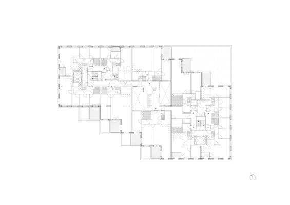 Een geleidelijke vergroting van de raamopeningen geeft het gebouw een luchtigere uitstraling naarmate het hoger wordt. Door de twee bewonersentrees volledig te omsluiten met glazen wanden, hebben we ervoor gezorgd dat ook de stenen muren die binnen doorlopen te zien zijn vanaf de straat. Binnenin 360 Degrees is een deel van de stenen in een doorgezaagde versie toegepast, waarmee het sloopafval letterlijk zichtbaar wordt.