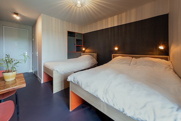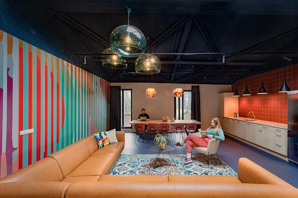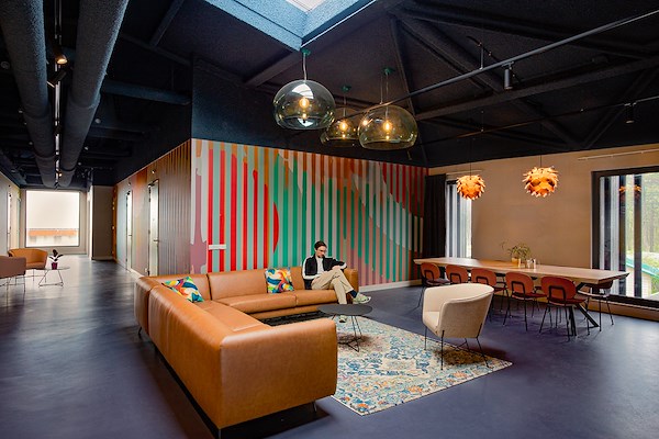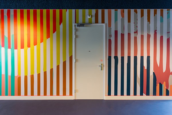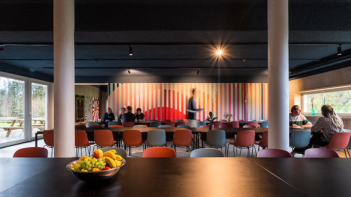 Het interieur is ontworpen om 'hufterproof' te zijn en past perfect bij de jonge en frisse uitstraling die bij de gebruikers hoort. Met opvallende kleurvlakken en sprekende graphics, evenals slimme akoestische oplossingen, biedt het een comfortabele omgeving voor maximaal 120 personen. De Nulck is niet alleen een praktische ruimte, maar ook een aantrekkelijke en functionele toevoeging aan Kampeerterrein Stortemelk, die zowel het personeel als de gasten ten goede zal komen.