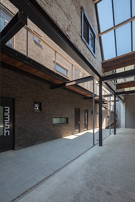 Het binnenterrein wordt grotendeels ingenomen door de oude fabriekshal waar de haarden werden geproduceerd. De constructie van de hal met sheddaken is na ongeveer 90 jaar weer zichtbaar gemaakt. De hal, gelegen tussen de bebouwing aan de Fahrenheitstraat en de Ampèrestraat krijgt een nieuwe bestemming als gemeenschappelijke ruimte en fietsenstalling. Op de footprint van de oude fabriek is naast de hal nieuwbouw gerealiseerd van drie bouwlagen. Deze appartementen zijn gelegen aan de gemeenschappelijke tuin.