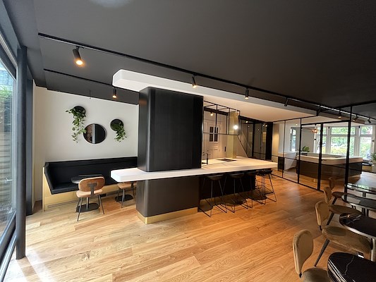 Ons team heeft het ontwerp verzorgd en de uitvoering van de verbouwing van de begane grond begeleid. Voorheen waren er meerdere kamers, maar we hebben de ruimte volledig opengebroken en getransformeerd tot een moderne en dynamische omgeving.