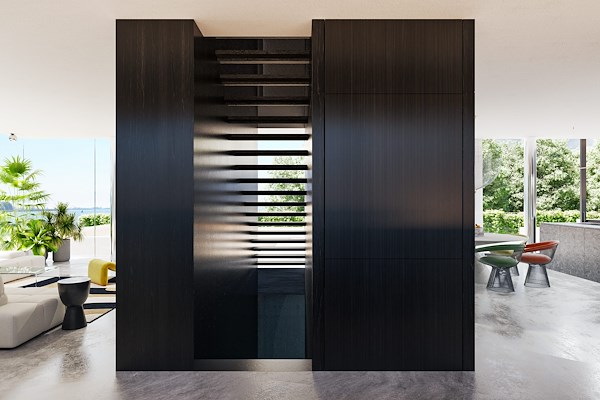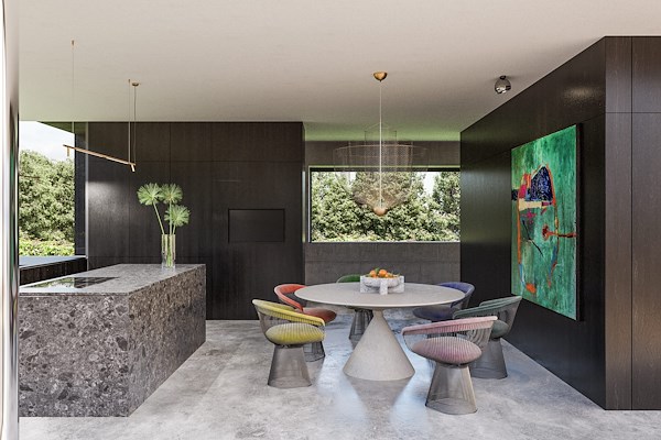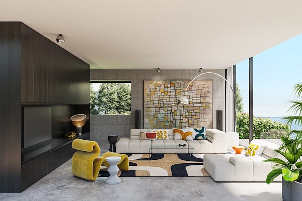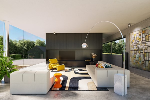 VKV Visuals werkt vaker samen met architect Donald Osborne. Deze keer hebben wij zijn ontwerp voor een superstrakke villa aan het water gevisualiseerd. Beton, chroom en zwart hout voeren de basis in dit ontwerp. VKV Visuals ontwierp het interior design plan met een knipoog naar Seventies Disco.