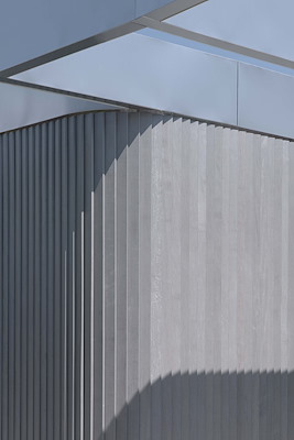 De wens van de opdrachtgevers om een materiaal toe te passen met weinig onderhoud maar toch een duurzame totstandkoming, viel de keus op Platowood Frake profielen. Platoniseren (hydrothermisch modificatieproces) is een proces dat het hout maatvast en onderhoudsarm maakt, even bovendien zorgt voor een goede thermische isolatie. Om het vriendelijke houtkarakter te versterken zijn de profielen gestapeld en zijn de hoeken van de gevel afgerond. Hierdoor ontstaat het gevoel van een doorlopende gevel.