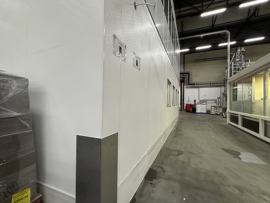 , het A-merk in de markt. Deze glasvezelversterkte polyester panelen zijn slagvast, krasvast en hebben aanzienlijk minder vuil- en bacteriehechting dan traditionele tegelwanden of sandwichpanelen, dankzij hun unieke structuur. Door directe verlijming gaat er geen ruimte verloren en behoudt de nieuwe wand de sterkte van de oude. Ook hebben we de oude raamkozijnen vervangen door RVS. Dit alles resulteerde in een razendsnelle renovatie zonder enige productiestilstand!