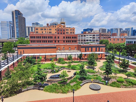 Het West End Historic District in Dallas (VS), ooit een buurt met oude pakhuizen en fabrieken, is nu een levendige wijk met nieuwbouw en een groot aantal creatieve bedrijven. De gebiedstransformatie heeft het industriële karakter van de wijk behouden en trekt vele nieuwe bewoners en bezoekers uit het nabijgelegen stadscentrum. Middelpunt van deze dynamische omgeving is West End Square, een modern stadspark naar ontwerp van het gerenommeerde internationale ontwerpbureau James Corner Field Operations (JCFO). Het park combineert op baanbrekende wijze technologie, natuur en architectuur: een voorbeeld van innovatie in de openbare ruimte en tegelijkertijd een eerbetoon aan de lokale geschiedenis.