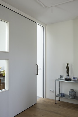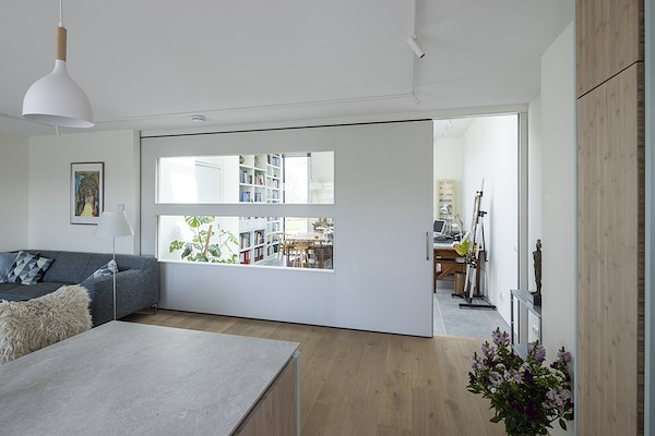 De geluidsisolerende schuifwand van 5 meter voorzien van ruime glasopeningen, ontworpen door Breedveld, biedt de ideale oplossing voor het creëren van twee aparte ruimtes die perfect in harmonie samengaan. Of het nu gaat om kunstenaars die hun creatieve vrijheid willen benutten of bewoners die willen genieten van rust en privacy, deze schuifwand biedt het beste van beide werelden in een adembenemend ontwerp.