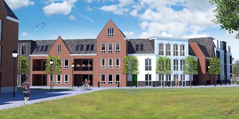 In Uitgeest komen 47 appartementen op de plek waar voorheen de bibliotheek en de Witte School stonden. De woningen worden in een u-vorm en met verspringende gevels gebouwd. Daarbij worden de woningen zo duurzaam als mogelijk: er worden warmtepompen geïnstalleerd en M3 architecten heeft gekozen voor de super geïsoleerde dakluiken van Gorter.