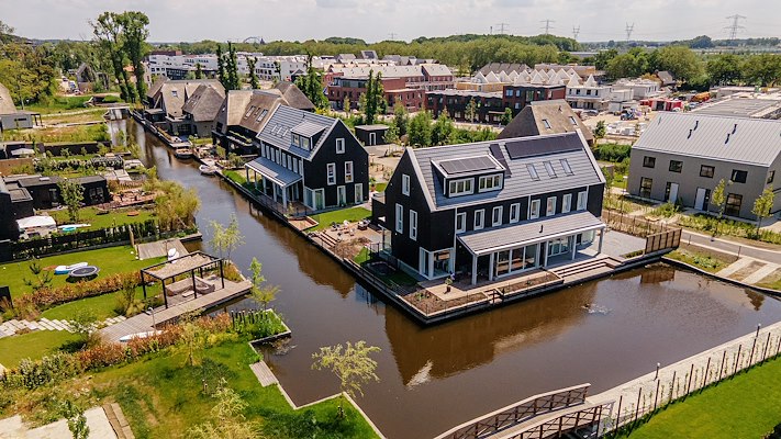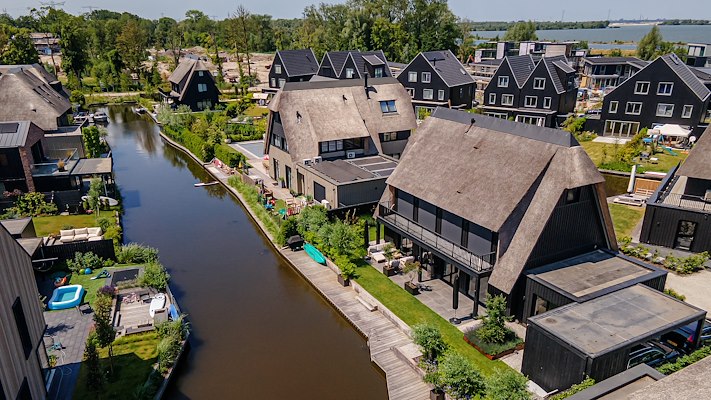 Lichtenberg Bouwgroep is de uitvoerder achter de bijzondere rietgedekte villa’s en de boot- en havenhuizen. Planvoorbereider Martijn Nuijsink: “Voor de vastgoedontwikkelaar achter dit project hadden we al eerder rietgedekte villa’s aan het water gerealiseerd. Dit vormde een mooi referentiekader voor de woonhuizen met rieten kap op het voormalige terrein van de kruitfabriek tussen Muiden, Amsterdam en Het Gooi. Ook hier ontwierpen we met EVE Architecten weer unieke woningen. In totaal ging het om 31 woningen, van vrijstaande villa’s tot half vrijstaande villa’s. Alle villa’s hebben een rieten dak en houten gevelbekleding in verschillende tinten. Door de keuze van verduurzaamd hout in de gevel en fraaie aluminium kozijnen zijn de villa’s zeer onderhoudsvriendelijk. De ruime woningen geven de kopers nog veel vrijheid om het naar wens in te richten.”