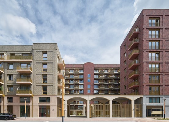 Bij dit project waren strenge geluidseisen vanwege de nabijheid van de Stadsbaantunnel een uitdaging. Het ontwerp omvat geluidswerende maatregelen aan de tunnelzijde, zoals glazen balkons, om geluidsoverlast te verminderen. Dit vereiste nauwkeurige esthetische en technische detaillering en duurzaam gevelisolatiemateriaal (glaswol bestaande uit 80% gerecycled glas) om aan brandveiligheidsnormen te voldoen en milieueisen te halen.
