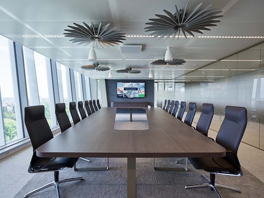 ETAP stelde de U7 voor, geïntegreerd en aangepast op maat van de bandrasters in het klimaatplafond. Visueel creëert dit doorlopende lijnen met ronde vormen van de U7-reeks. Aangezien de armaturen dezelfde kleur hebben als het plafond, is er een naadloze integratie van de verlichting. Het ventilatiesysteem gebruikt de verlichtingsarmaturen voor de luchtextractie.