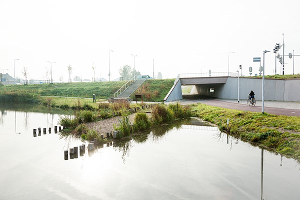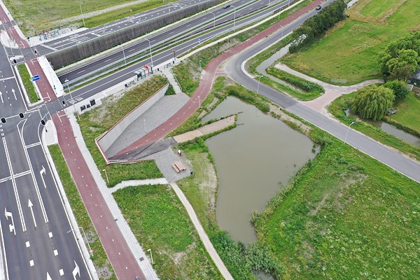 Uniek is ook dat de weg duurzaam is ontwikkeld: er is zo min mogelijk beton toegepast, het hout van de lamellenwand is duurzaam geproduceerd van snelgroeiende Europese soorten en bij de inrichting van de buitenruimte zijn materialen hergebruikt. BoschSlabbers werkte samen met ZJA in opdracht van Boskalis aan het winnende tender ontwerp en was als lid van het kernteam nauw betrokken bij de uitvoering en kwaliteitsbewaking.