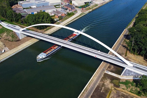 Door het vlakke Vlaams Limburgse land bij Beringen, vlak buiten de stad Hasselt, passeert het Albertkanaal de gemeente Tessenderlo. Het Albertkanaal dat Luik en het Oosten van het land met de Antwerpse haven verbindt, wordt in een groot project aangepast aan de grote maten van de containerbinnenvaart. Dat betekent niet alleen de vergroting van sluizen, maar vooral de vernieuwing en verhoging van bruggen, met de nieuwe doorvaarthoogte van 9.10 meter.