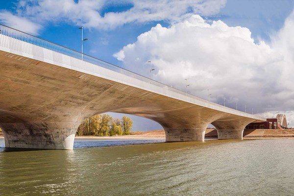 De beroemde Waalbrug met zijn statige stalen boog moest een verlengde krijgen om de sprong over de Spiegelwaal te maken. Die nieuwe brug moest passen in het nieuwe landschap en een bovendien waardige voortzetting van de monumentale brug zijn.