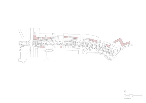 De bestaande 'couleur locale' van het gebied vormt het hoofdconcept voor de architectuur, waardoor verschillende ontwerpen deel uitmaken van dezelfde architectonische familie en zich visueel verhouden tot het omliggende stadsgebied. Deze ‘couleur locale’ verwijst naar de architectuur van de grote lanen van eind 19e eeuw van steden als Maastricht, Antwerpen en Aken: een rijke architectuur van metselwerk doorsneden door banden van lokale natuursteen, prominente kroonlijsten en verticale, verspringende geveldelen. Om een afwisselende en levendige schaal in de grote straatgevel te bereiken, zijn woonblokken samengesteld tot kleinere ensembles, geaccentueerd door verschillende baksteenkleuren gekozen uit een subtiel kleurenpalet. In detail wordt de schaal van de blokken doorbroken door een korter ritme van raamopeningen, pilasters, erkers en entrees. De afwisseling prikkelt de passant die steeds meer tastbare details ontdekt, zoals bijzondere hekken, uitstekende stenen bij de scheiding van twee woningen en de armaturen boven voordeuren.
