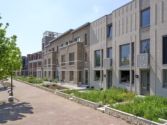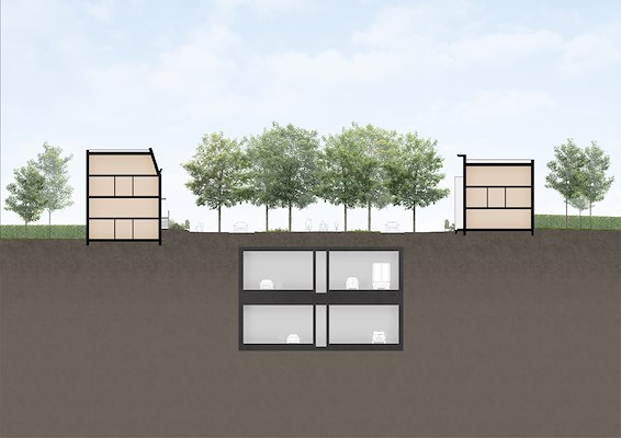 Andere ontwerpen binnen het plan bezitten een specifieke souterrain met bel-etage typologie, kenmerkend voor de historische panden uit de omgeving. Deze typologie zorgt voor een rijk en divers straatbeeld omdat voordeuren niet alleen op straatniveau liggen maar soms ook op een hoger niveau, die van de bel-etage. Het niveauverschil tussen straat en achtertuin wordt in deze woningen opgelost.