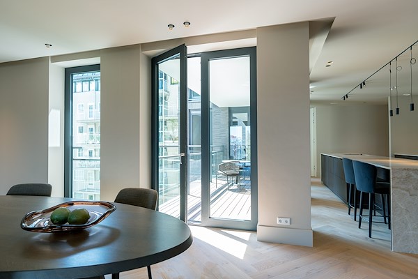 Uiteindelijk werden raam- en deursysteem ConceptSystem 77 en schuifsysteem ConceptPatio 155 van Reynaers Aluminium toegepast. Ook moest de brandwerendheid gewaarborgd zijn in verband met de brandoverslag van de omringende gebouwen. Dat moest bij elkaar komen in een profilering met een bepaalde rankheid om het elegante gevelbeeld te behouden.” Maikel van Wijk was als tendermanager Facédo nauw bij het project betrokken. “MVSA Architecten vroeg ons om het ontwerp te vertalen naar de juiste gevel. We hebben hier gekozen voor de gevelsystemen van Reynaers. Met name omdat hier stolpramen in zitten die specifieke eisen hadden. Daar konden wij met het raam- en deursysteem ConceptSystem 77 een goede invulling aan geven.”