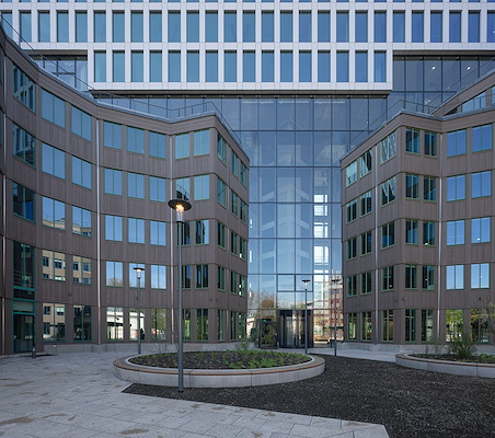 Grenzend aan A10 was het toepassen van geluidswerende elementen geen overbodige luxe. Tezamen met de grote glasoppervlakten en hoge gewichten is in het project het Schüco vliesgevelsysteem FWS 60 toegepast met (gedeeltelijk) AWS 114 ventilatieramen. Voor de strakke witte gridgevel zijn door gevelbouwer Rollecate speciale profielen gemaakt op basis van de AF UDC 80 elementengevel. Voor de huurappartementen is de slanke raamserie AWS 70 WF.HI als projectoplossing toegepast.