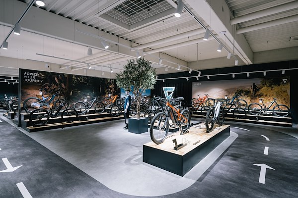 Düsseldorf is de thuisbasis van de enige Duitse flagship store van GIANT, 's werelds grootste fabrikant van hoogwaardige fietsen. De verhuizing naar de nieuwe locatie, met nog meer ruimte en een nieuwe look, vond plaats in de herfst van 2022. De fietsen, kleding en accessoires zijn te zien op een verkoopoppervlak van 900 vierkante meter en een totale oppervlakte van 1.200 m². Het GIANT winkelconcept omvat de presentatie van de fietsen op sokkels en het samenspel van hout, beton en zwarte oppervlakken. Het hoogtepunt van de winkel in Düsseldorf is de indoor testbaan voor testritten. Witte pijlen in de rijrichting en zebrapaden creëren de look van de weg en zorgen ook voor veiligheid op het 50 meter lange parcours.