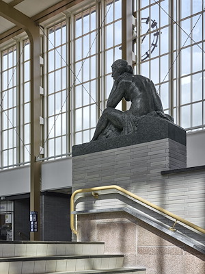Schelling plaatste de stationshal haaks op het spoor, zodat trams, bussen, taxi's en fietsen rondom de hoofdhal konden worden opgesteld. Innovatief was het feit dat de stationshal en de perronoverkapping als grote, luchtige en uitnodigende constructies waren ontworpen. Het bouwconcept omvat historische verwijzingen naar de kathedraalarchitectuur: in navolging van het schip van een gotische kerk torent de hoge, glazen hoofdhal boven de eenvoudige “zijbeuken” met hun winkels en serviceruimtes uit. De sfeer wordt benadrukt door enorme muurschilderingen van kunstenaar Peter Alma. Deze maakten vanaf het begin deel uit van het oriëntatieconcept, waarbij vooral aandacht werd besteed aan het zorgvuldig gebruik van licht en ruimtelijke dimensies. Sommige van deze bijzondere kenmerken gingen echter verloren in 1977, toen de ondergrondse spoorlijn in het station werd opgenomen. De oorspronkelijke zichtlijnen werden doorbroken door tal van grote en kleinere ingrepen, waaronder de toevoeging van nieuwe servicebalies en uitgebreide winkelruimtes.