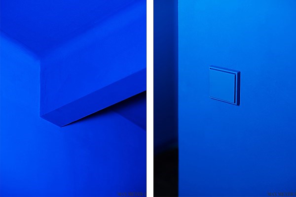 Om de bestaande tegels qua formaat en kleur beter tot hun recht te laten komen, is het oorspronkelijke ontwerp aangevuld met warme hout-, terracotta- en geeltinten en ‘Travertino Rosso’ voor horizontale vlakken. De showstopper echter is de gang, waar zowel bezoekers als bewoners enthousiast worden verwelkomd. Om het contrast met de omliggende ruimtes, die overspoeld worden met licht, te versterken, is voor de gang gekozen voor diep en donker blauw. Het effect van kleur op mensen en op ruimtes wordt hier op indrukwekkende wijze gedemonstreerd met de schakelaar in LS 990 in de originele bleu outremer 59 van Les Couleurs® Le Corbusier, met kleurnummer 4320K, die één wordt met de blauwe muur.