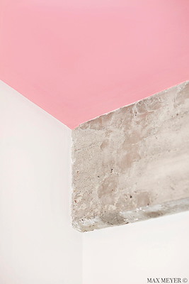 Met zijn pure ivoorwitte kleur vormt de woonkamer de perfecte passe-partout voor het leven dat zich hier afspeelt. Schakelaars en contactdozen in LS 990 worden naadloos in de ruimte opgenomen, die slechts wordt verlevendigd door de keuze van de meubels en hun krachtige accentuering. Al wat gedurfder is het in de slaapkamer en het kantoor, waar de plafonds in een glanzende tint roze zijn geschilderd, waarmee afhankelijk van de lichtinval, een andere sfeer wordt opgeroepen. Passend bij de plafonds zijn de schakelaars gekozen in Les Couleurs® Le Corbusier rose vif (kleurnr. 4320C).